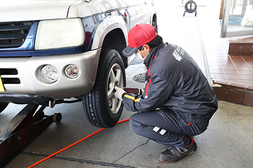 給油時のタイヤのミゾ・空気圧チェックで安心運転。 スピーディなタイヤ交換作業も好評です。ブリジストン・ダンロップ・トーヨー・ヨコハマなど全メーカーのタイヤをご用意しています。 「冬季のみスタッドレスタイヤを着用したい」といったシーズンに応じたタイヤ交換も大歓迎です!